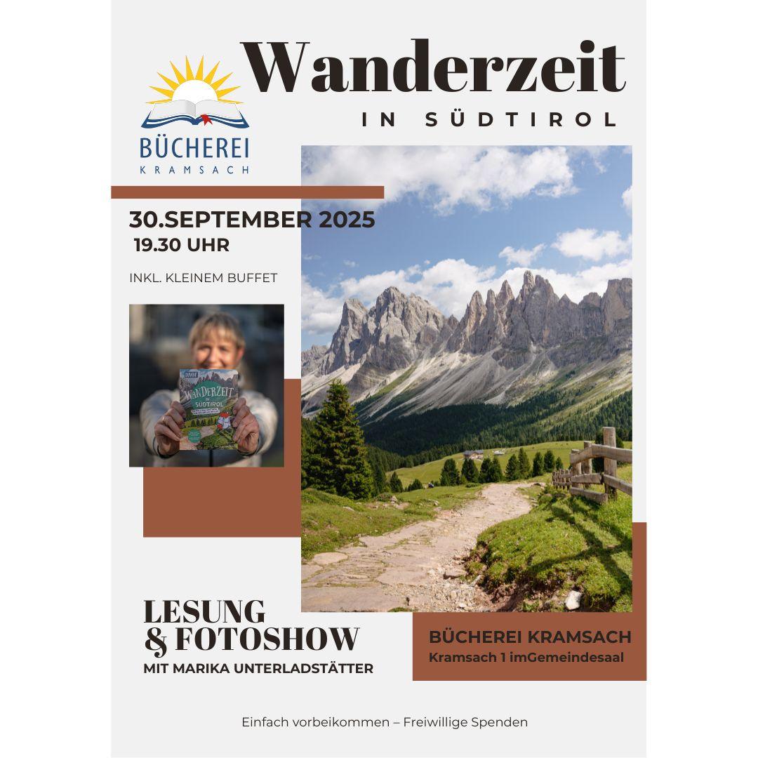 Herbst und es ist Wanderzeit - mit Marika Unterladstätter treten wir eine Wanderreise durch Südtirol an. Mit ihrem neuen Buch und Fotoshow lädt sie uns am 30.09.2025 um 19.30 Uhr ein, auf ihre Reise durch Südtirol und lasst euch danach mit einem kleinen Buffet verwöhnen. Freiwillige Spende